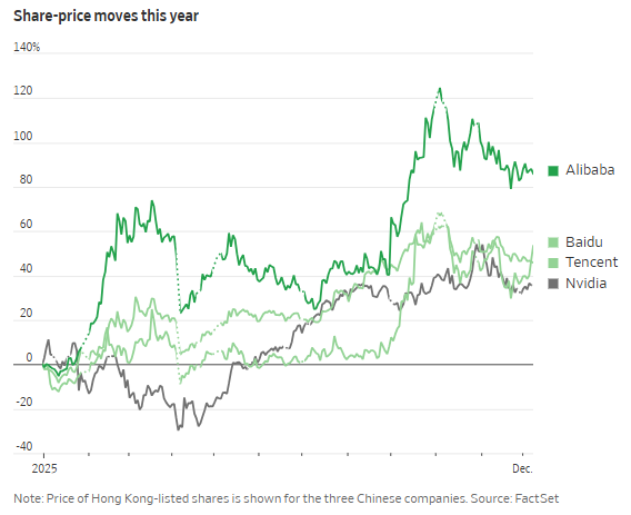 凯投宏观首席经济学家Neil Shearing也指出,“多数发达经济体在人工智能竞赛中都难以跟上美国的步伐,但2025年也是中国缩小部分差距之年。”他补充道,股票投资者似乎正押注于中国“在科技前沿领域将更广泛地超越美国”。